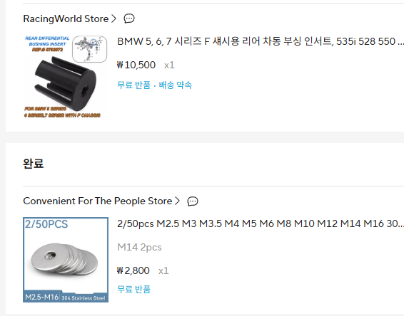부싱은 양키형들 판매 사이트보다 1/10 가격에 구매.